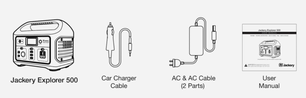 Jackery Explorer 500 estación de energía portátil (518Wh), Adaptador CA, Cable de cargador de auto, Manual de usuario